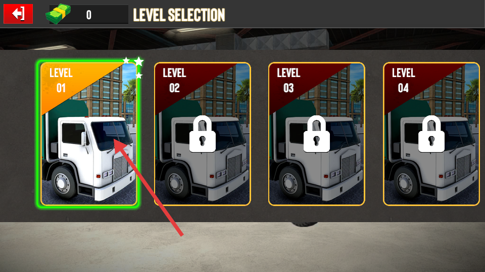 3、關(guān)卡選擇界面初始只有LEVEL01可玩,后續(xù)關(guān)卡需解鎖,點(diǎn)擊可玩關(guān)卡就能進(jìn)入對(duì)應(yīng)場(chǎng)景,開始垃圾收集運(yùn)輸任務(wù),關(guān)卡難度逐步提升,能體驗(yàn)不同的垃圾運(yùn)輸挑戰(zhàn)。