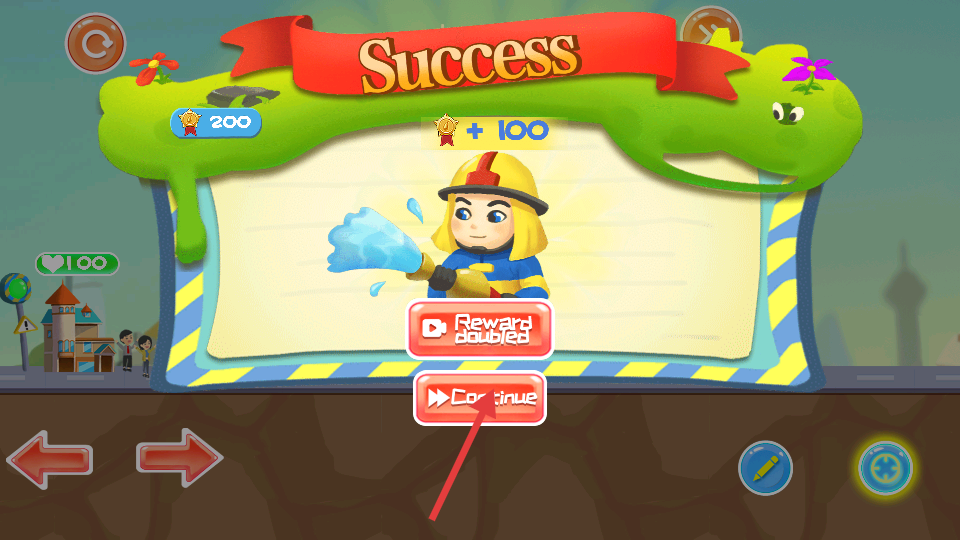 4、成功撲滅火災(zāi)后會顯示Success的成功界面,還能獲得相應(yīng)的獎勵,此時點擊Continue按鈕,可繼續(xù)進(jìn)行下一個救火任務(wù),不斷挑戰(zhàn)不同的火災(zāi)場景。
