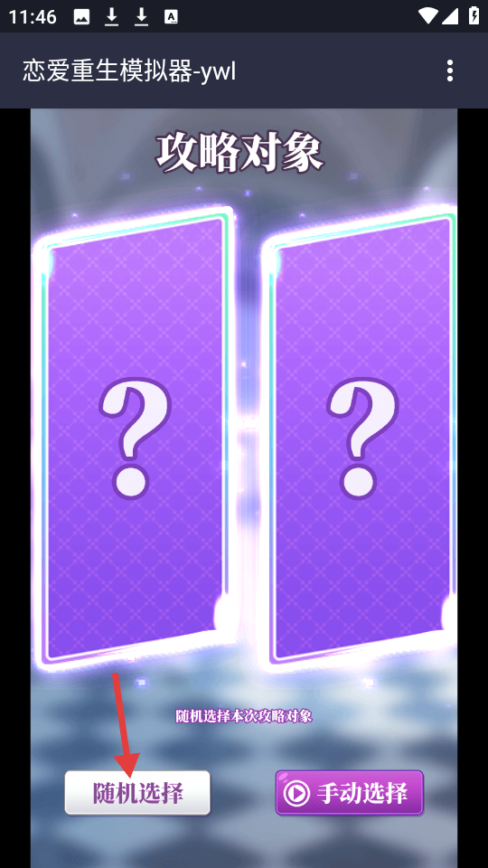 3、轉(zhuǎn)生后進入攻略對象選擇界面,可點擊隨機選擇,由系統(tǒng)隨機挑選本次要攻略的對象,也能選手動選擇自主決定攻略目標,開啟不同的戀愛攻略之旅。