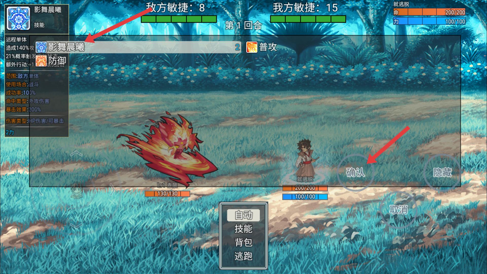 3、遭遇敵人進(jìn)入戰(zhàn)斗后,可選擇技能或普攻攻擊敵人,使用技能影舞晨曦,合理釋放提升戰(zhàn)斗效率。