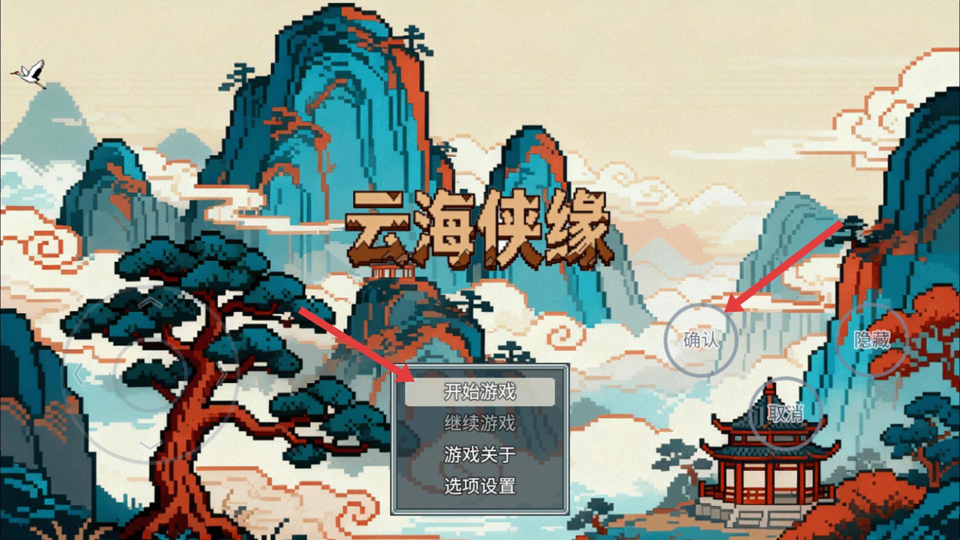 1、點(diǎn)擊【開(kāi)始游戲】,進(jìn)入云海俠緣,開(kāi)啟武俠冒險(xiǎn)之旅,在充滿仙俠氛圍的世界中探索成長(zhǎng)。