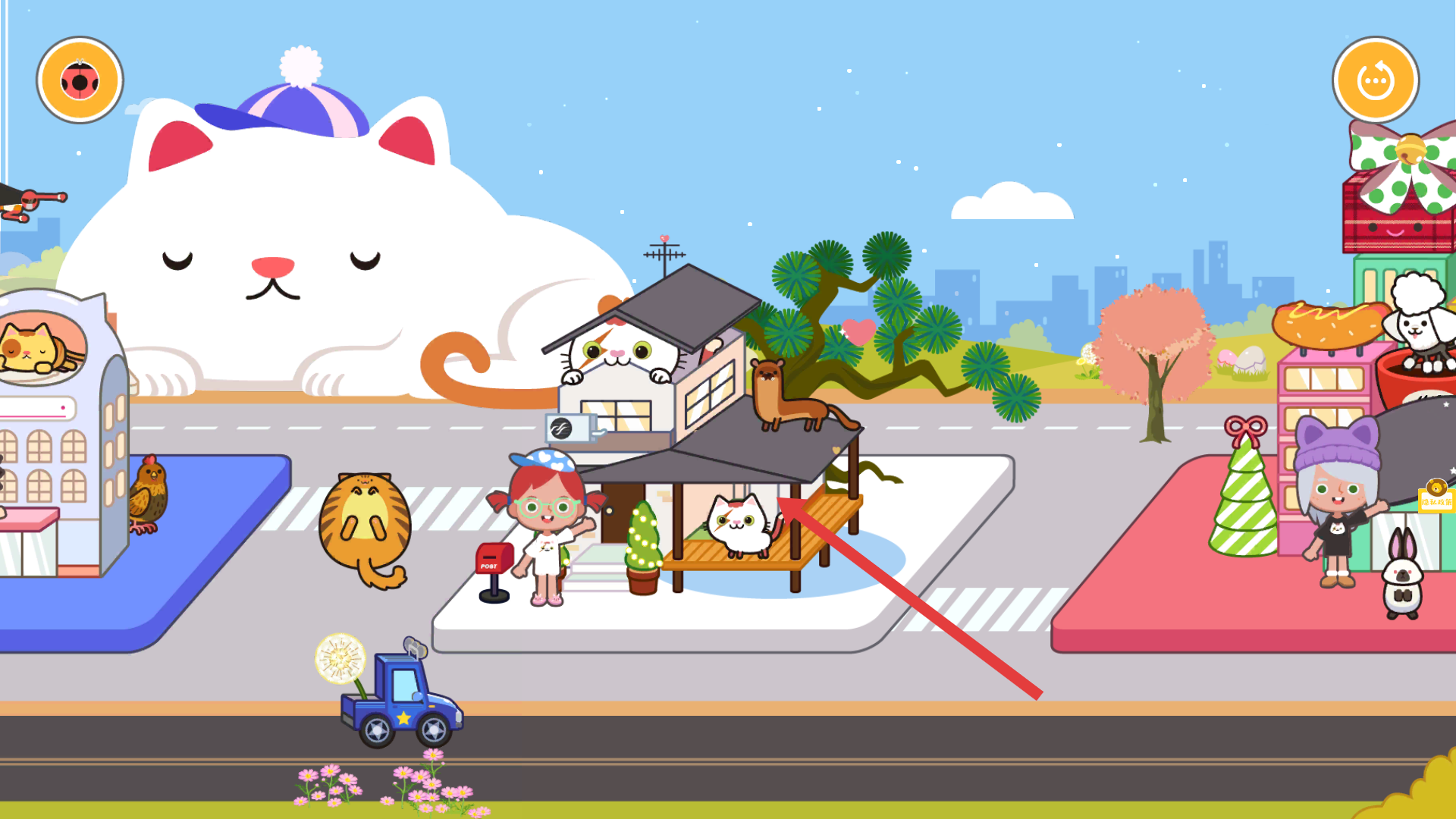 2、進入游戲后會看到有著可愛房屋、卡通角色等元素的場景,找到那座帶有貓咪等生動形象的房屋并點擊,就可以進入到房屋的內(nèi)部場景,去發(fā)現(xiàn)里面的小秘密。