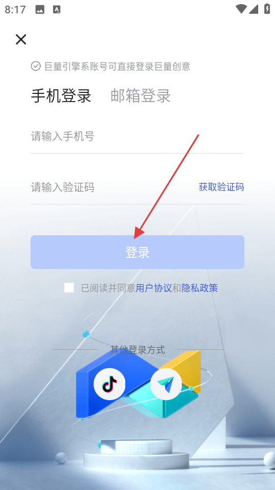 3、如果平臺的賬號,在登錄頁面選擇手機登錄,輸入你的手機號,點擊獲取驗證碼后填入,最后點擊登錄按鈕,如果是首次登錄,系統(tǒng)會自動引導你完成注冊流程。