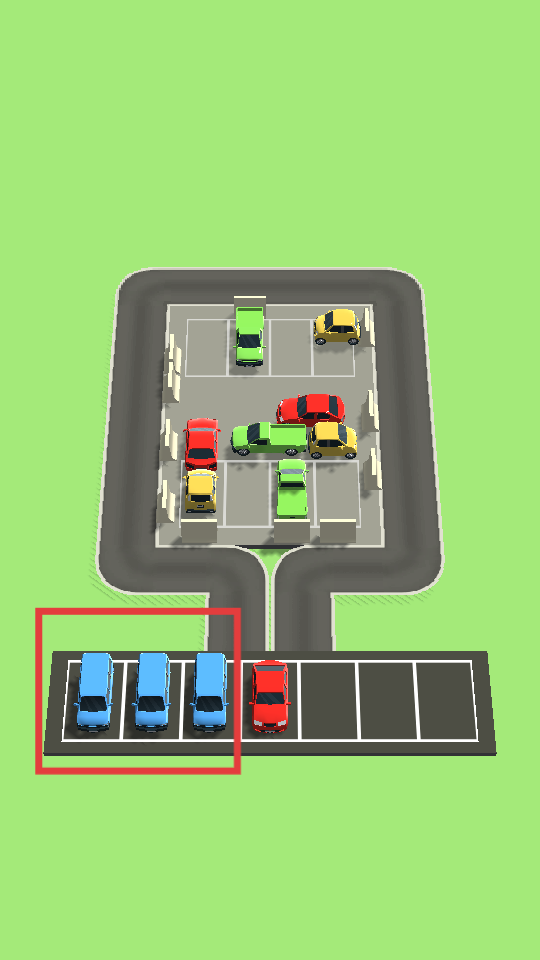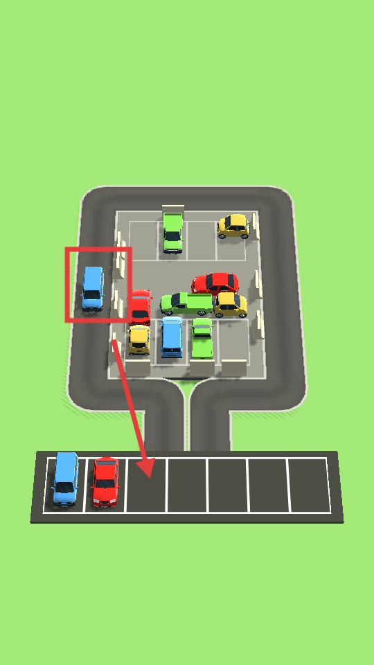 3、移動(dòng)車輛將其停到下方車輛旁的車位,通過(guò)合理安排車輛移動(dòng)順序,讓同色車輛集中停放,方便后續(xù)進(jìn)行消除操作。