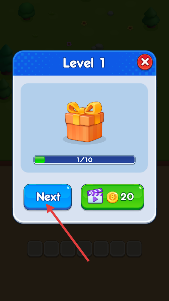 4、成功清空上方所有方塊后,會(huì)彈出關(guān)卡結(jié)算界面,點(diǎn)擊藍(lán)色Next按鈕,即可進(jìn)入下一關(guān),繼續(xù)進(jìn)行方塊匹配的游戲挑戰(zhàn)。