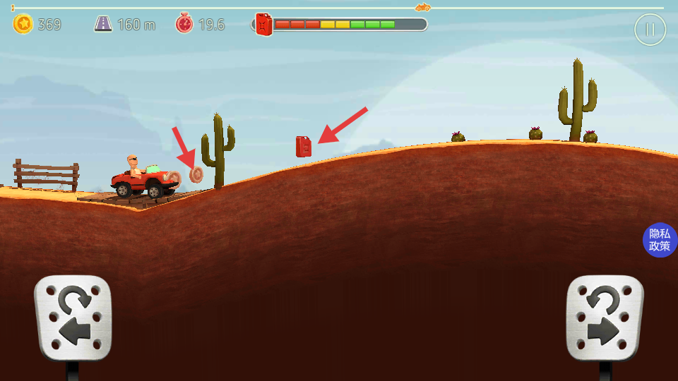 2、駕駛車輛在山地行進(jìn)時(shí),注意收集路上的金幣和紅色油箱道具,金幣可用于解鎖獎(jiǎng)勵(lì),油箱能補(bǔ)充車輛燃油,助力玩家更長遠(yuǎn)行駛。