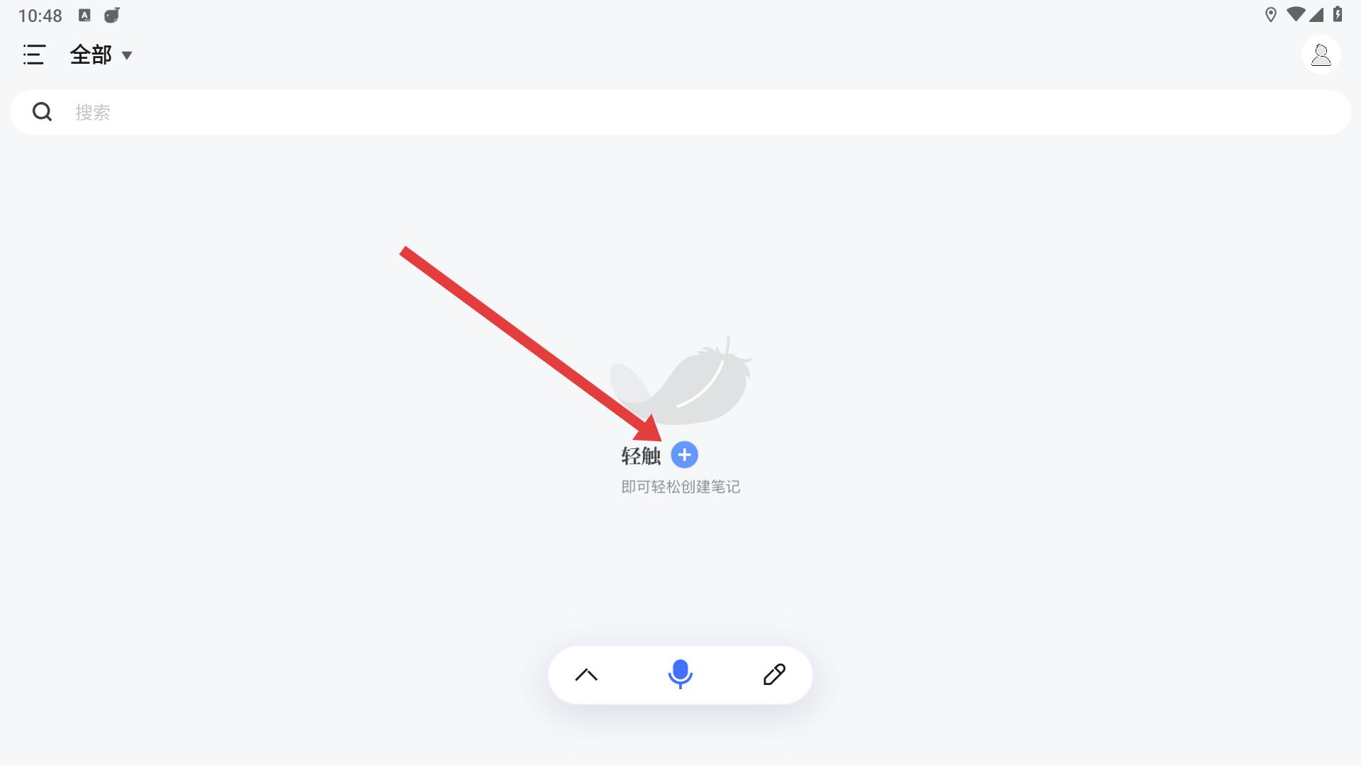 1、主界面輕觸藍(lán)加號(hào)按鈕,可進(jìn)入筆記創(chuàng)建流程,開(kāi)始記錄內(nèi)容。