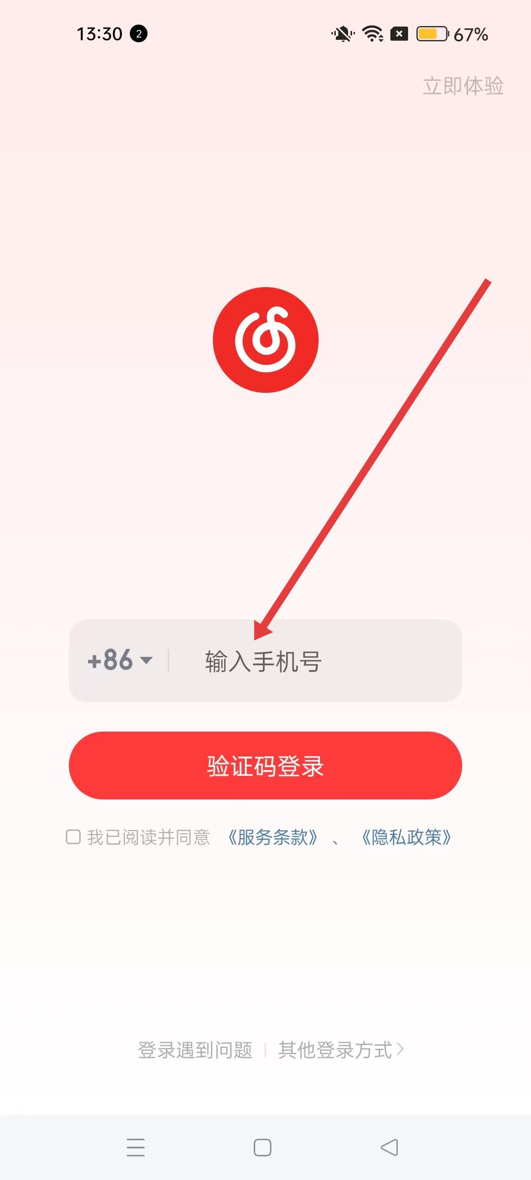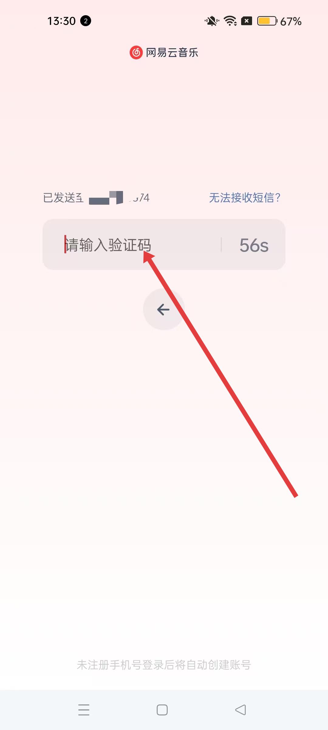 2、新賬號登錄界面輸入手機號,點擊驗證碼登錄按鈕,獲取并準備輸入驗證碼。