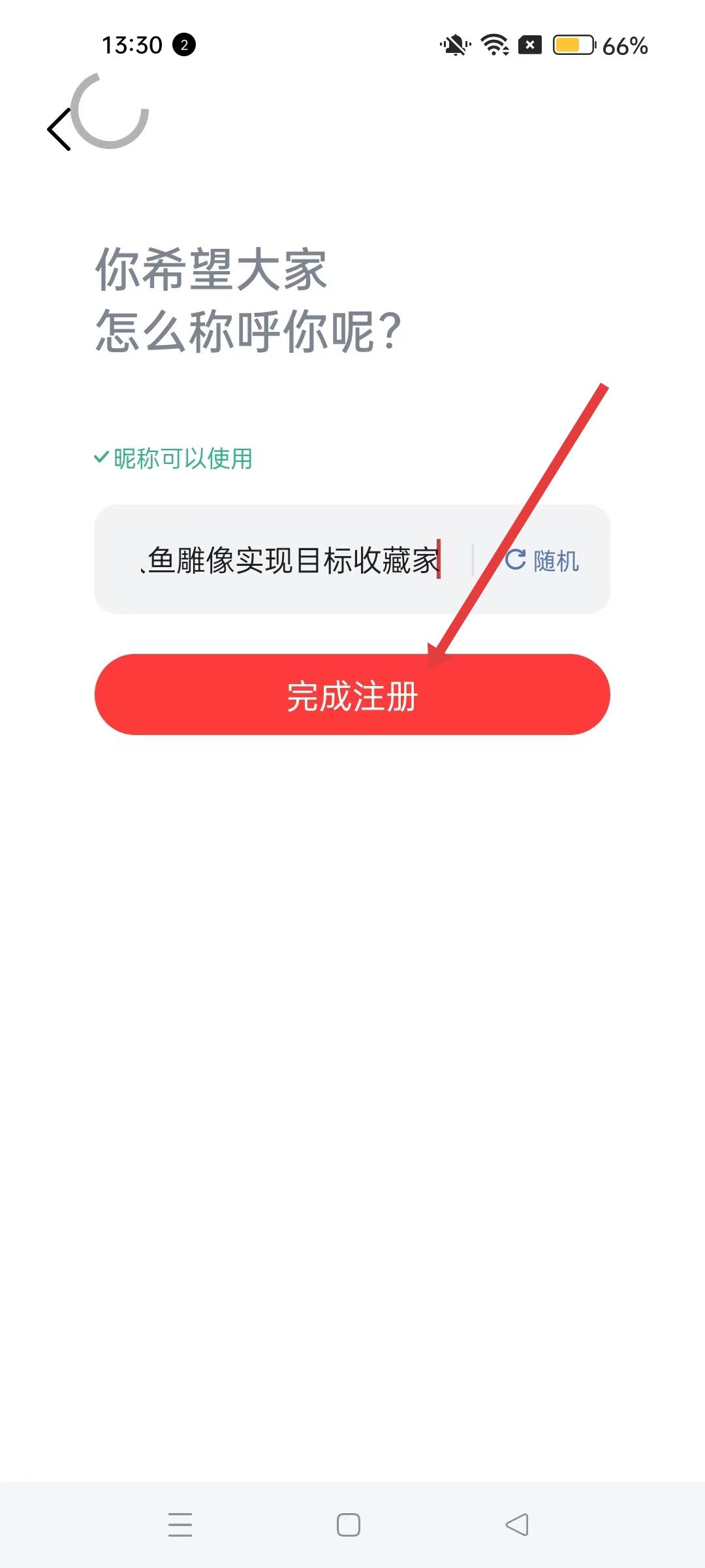 4、驗證通過后進入昵稱設(shè)置界面,輸入可使用的昵稱后點擊完成注冊按鈕,完成新賬號注冊登錄操作。