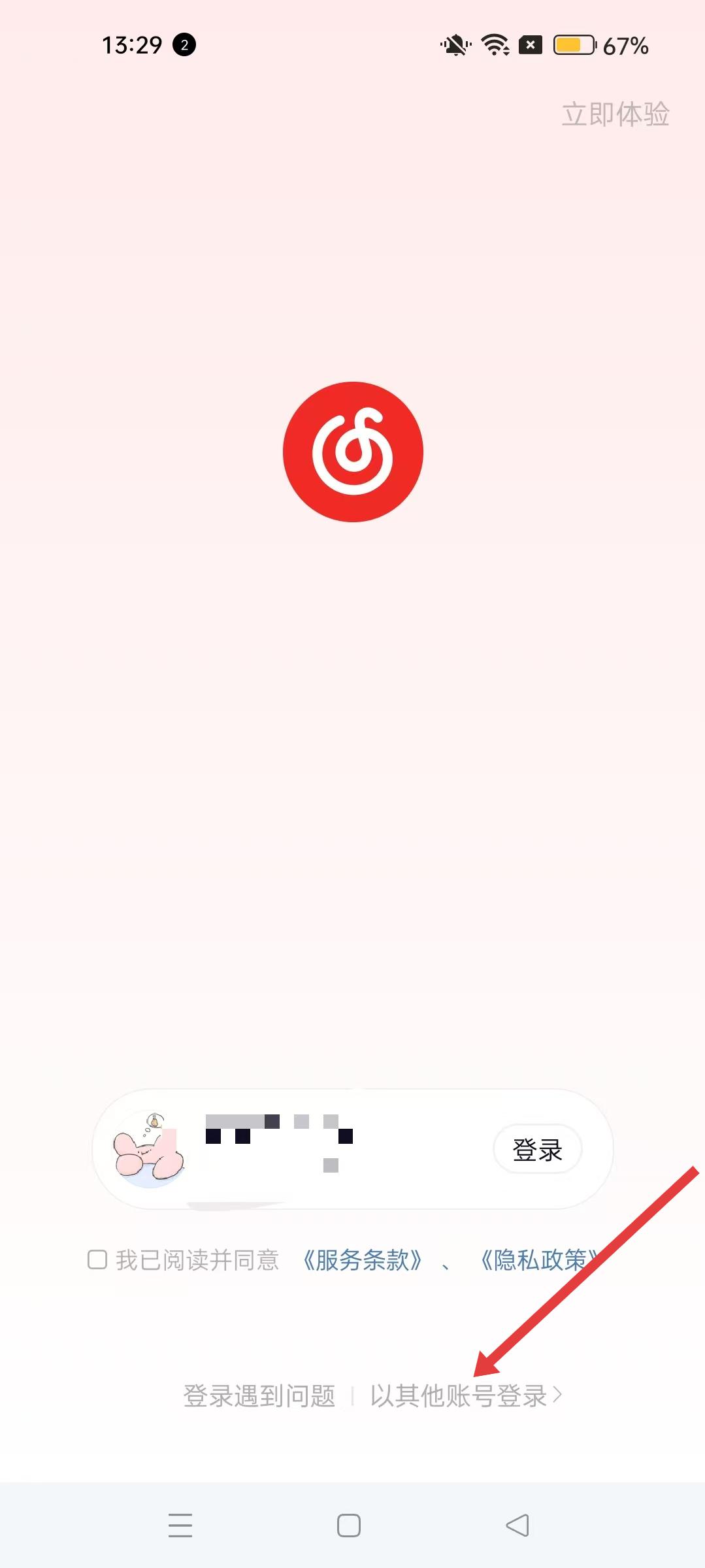 1、進入網(wǎng)易云音樂登錄界面,點擊以其他賬號登錄選項,進入新賬號登錄注冊流程。