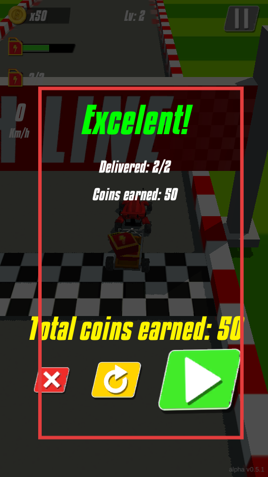4、成功完成比賽后,會(huì)顯示Excelent的評(píng)價(jià),以及收集的能量箱數(shù)量和獲得的金幣,可點(diǎn)擊綠色箭頭按鈕,進(jìn)入下一場(chǎng)比賽繼續(xù)挑戰(zhàn)。