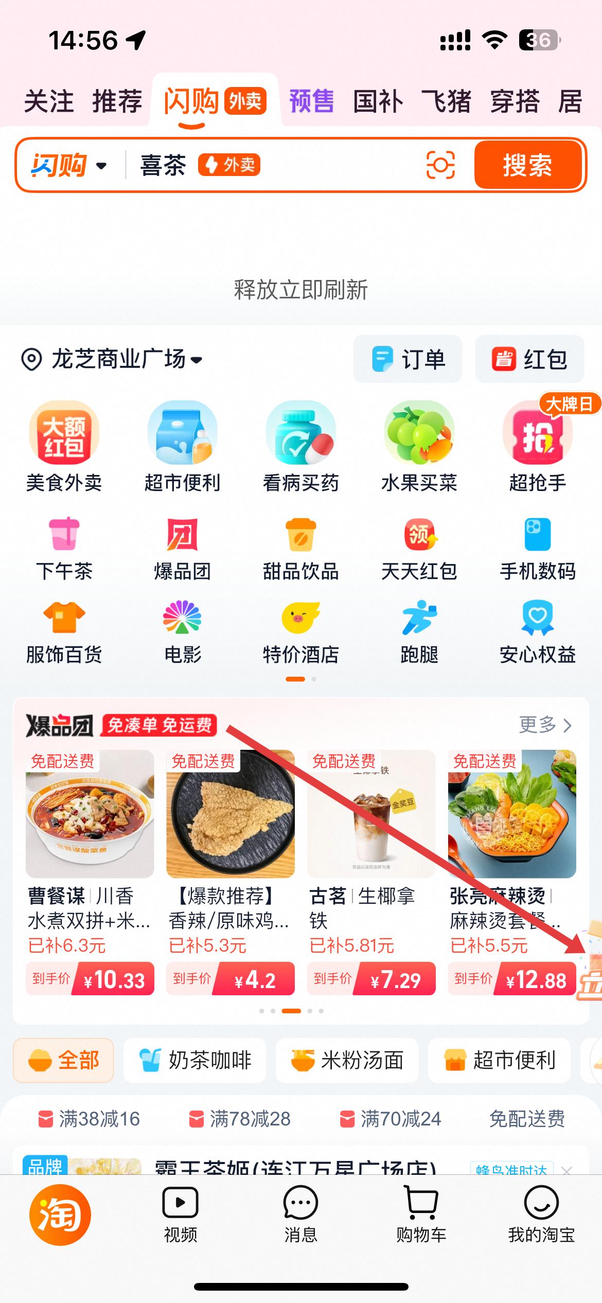 ● 淘寶閃購:天天免單等你搶,外賣紅包送不停