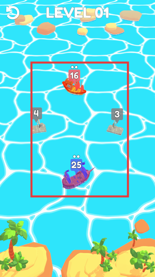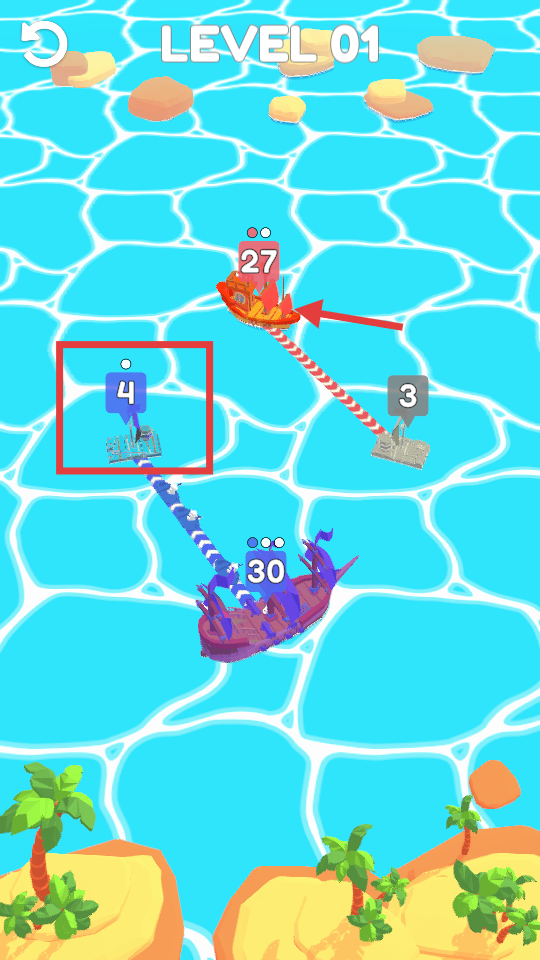 1、游戲開始觀察己方與敵方船只及據(jù)點的數(shù)值,然后規(guī)劃進攻策略,優(yōu)先選擇數(shù)值合適的目標,派出船只發(fā)起進攻爭取占領(lǐng)據(jù)點。