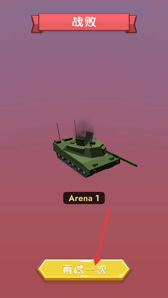 4、若戰(zhàn)斗失敗屏幕顯示戰(zhàn)敗,點擊再試一次按鈕,可重新挑戰(zhàn)競技場1,總結(jié)經(jīng)驗調(diào)整戰(zhàn)術(shù),爭取下次拿到勝利。