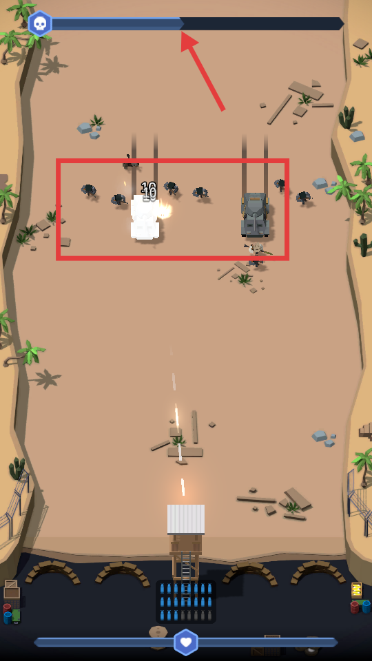 2、戰(zhàn)斗中操控火力攻擊敵人,注意上方進(jìn)度條變化,玩家要及時調(diào)整策略,應(yīng)對不同類型的敵人保護(hù)基地安全。