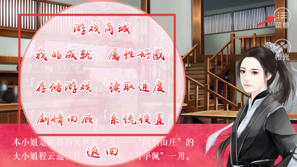 4、點擊菜單可進入菜單界面,查看我的成就、屬性好感,還能進行存儲游戲、讀取進度等操作,方便管理游戲進程。