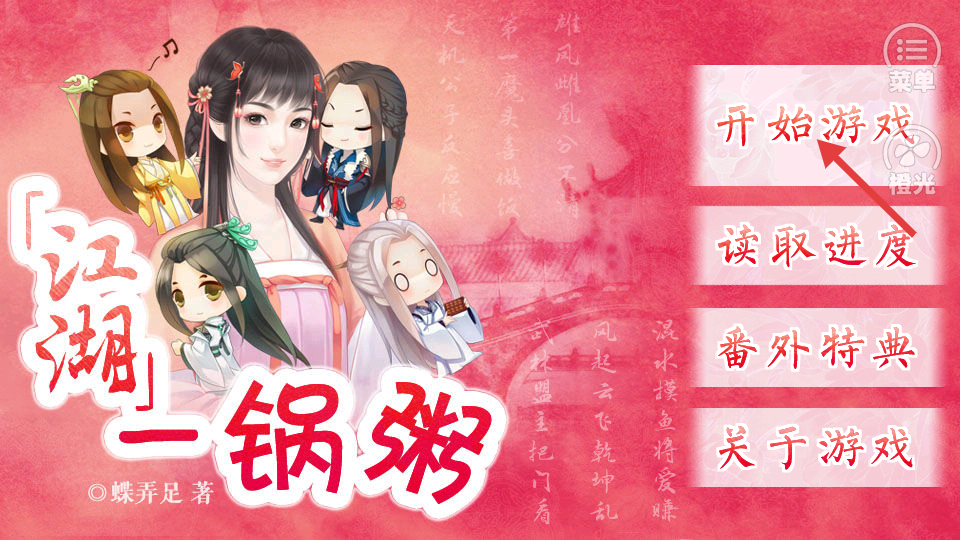 1、玩家進入游戲主界面,點擊開始游戲選項,即可開啟江湖一鍋粥的江湖冒險之旅,開啟精彩劇情旅程。