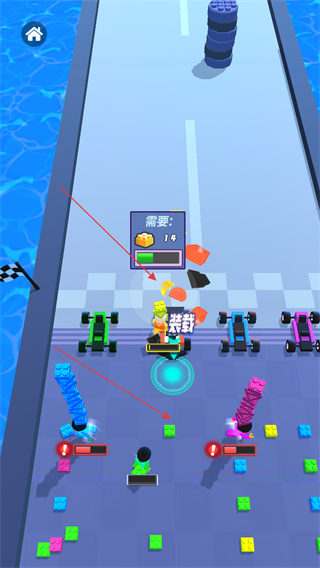 2、在賽道行駛過(guò)程中留意賽道上散落的彩色積木塊等物品,操控賽車收集它們收集到一定數(shù)量的物品后,可用于對(duì)賽車進(jìn)行載。