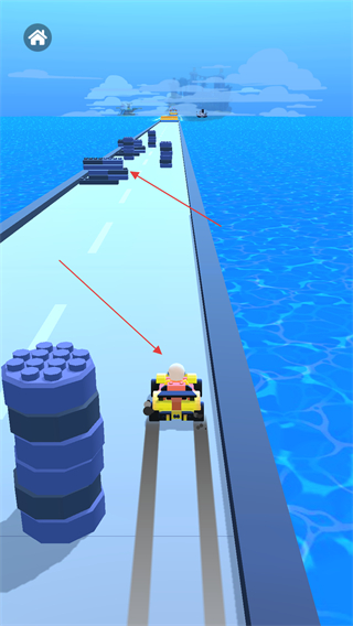 3、賽道上會(huì)設(shè)置各種障礙,如藍(lán)色的柱狀物等,操控賽車靈活移動(dòng)躲避這些障礙,避免碰撞,確保賽車能順利在賽道上行駛。