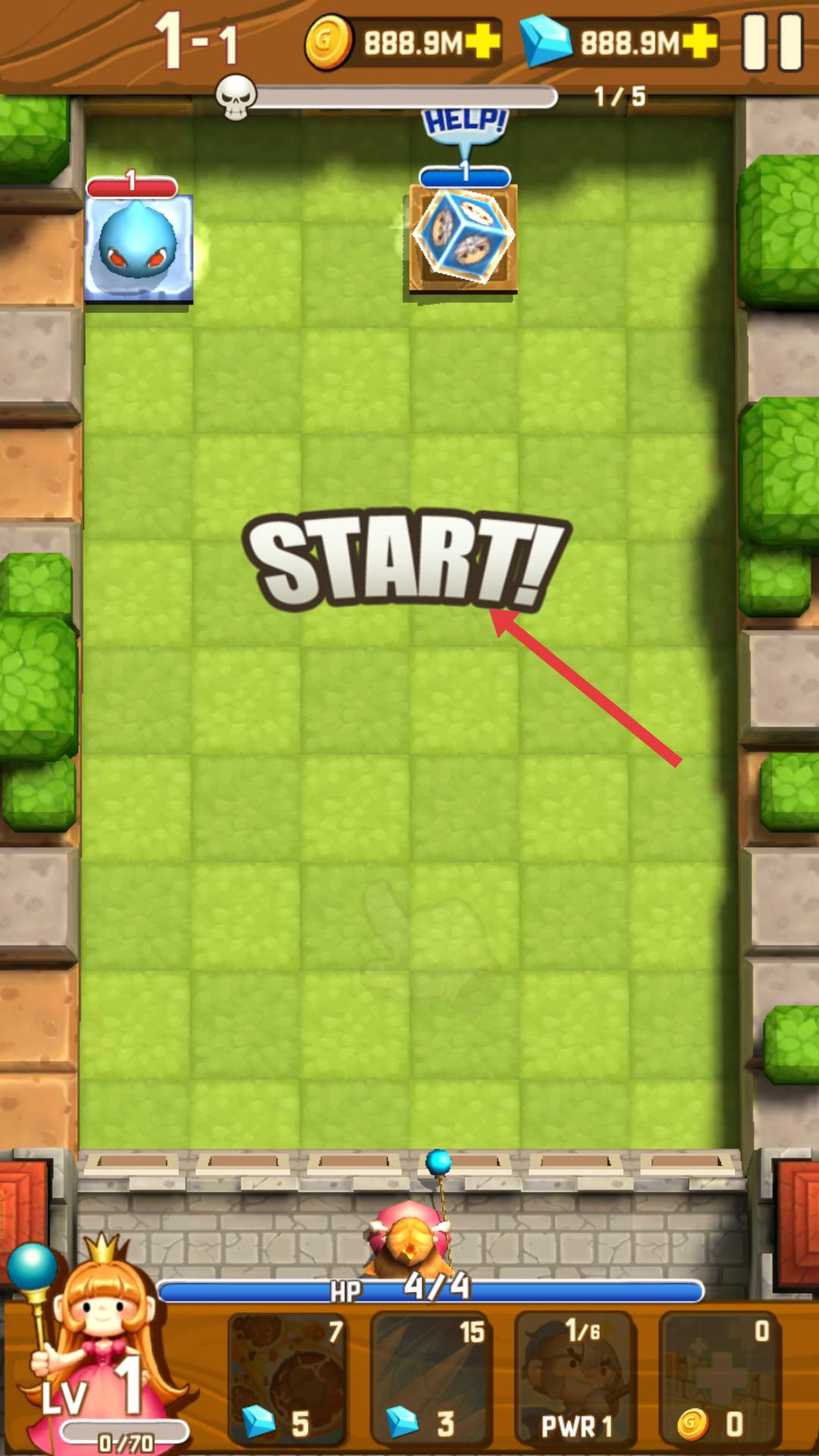 3、在1關(guān)卡中,出現(xiàn)START字樣,點擊它,就能啟動關(guān)卡內(nèi)的挑戰(zhàn),與怪物等進行戰(zhàn)斗,展開游戲內(nèi)容。