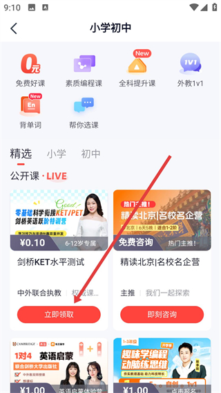 2、小學(xué)初中頁面課程豐富,覆蓋全科提升、外教1對1等,熱門公開課持續(xù)推送滿足學(xué)習(xí)需求。