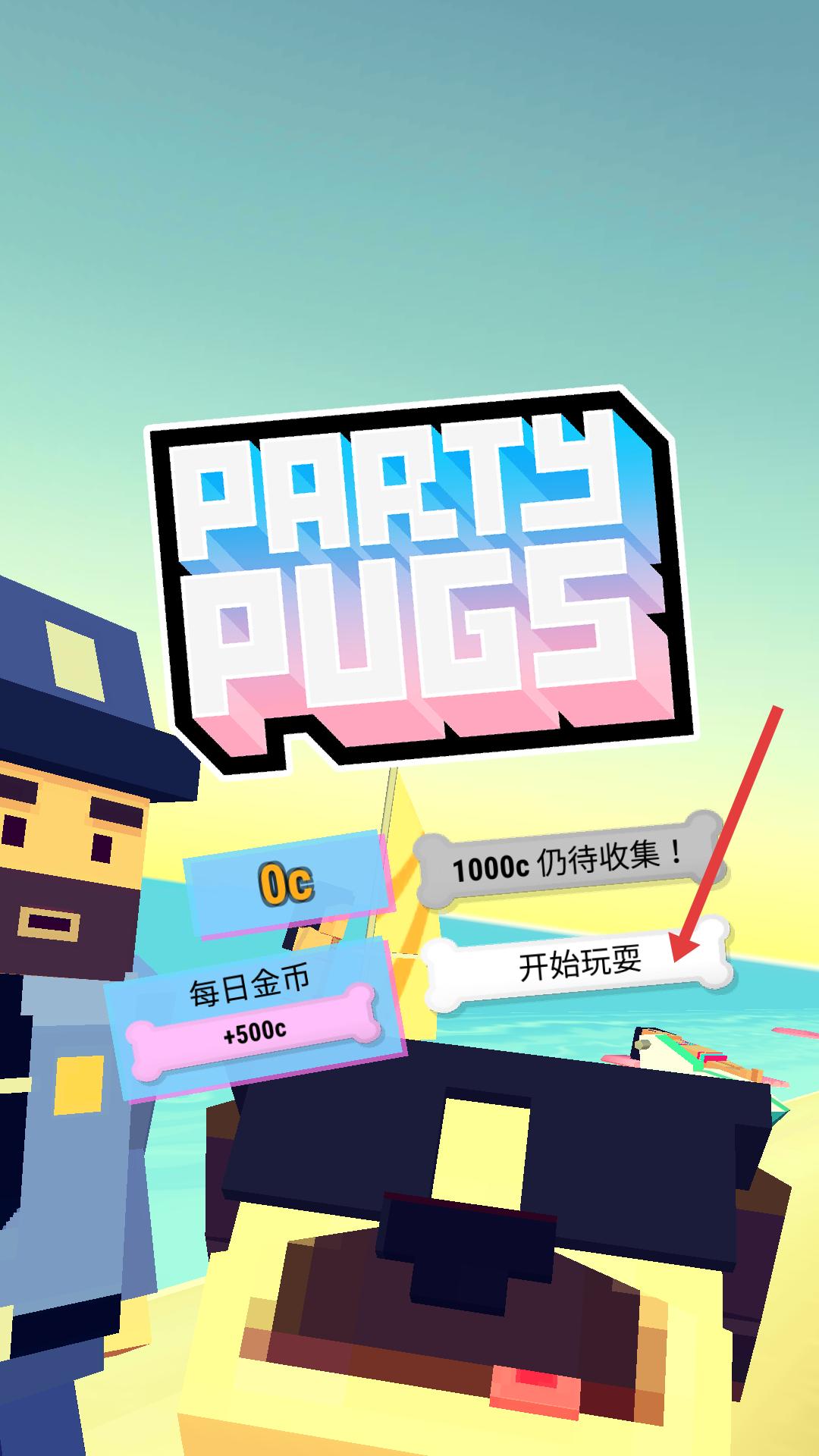 1、游戲初始界面顯示排隊(duì)開始,有每日金幣獎(jiǎng)勵(lì)和待收集金幣提示,點(diǎn)擊開始玩耍按鈕,即可進(jìn)入游戲,開啟與巴哥犬相關(guān)的冒險(xiǎn)。