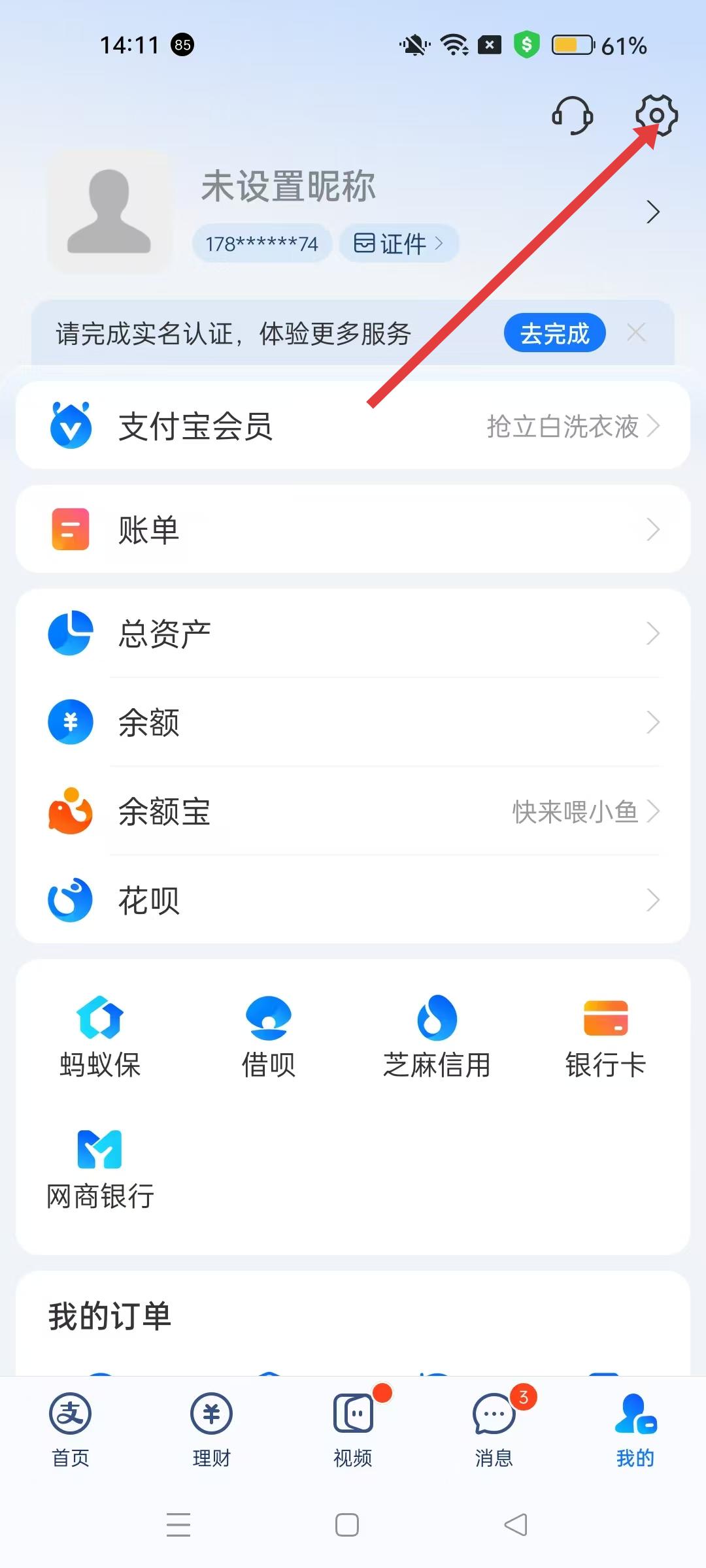2、個人頁面點擊右上角設(shè)置圖標(biāo),進(jìn)入設(shè)置頁面,可查看和管理賬號、支付等相關(guān)設(shè)置。