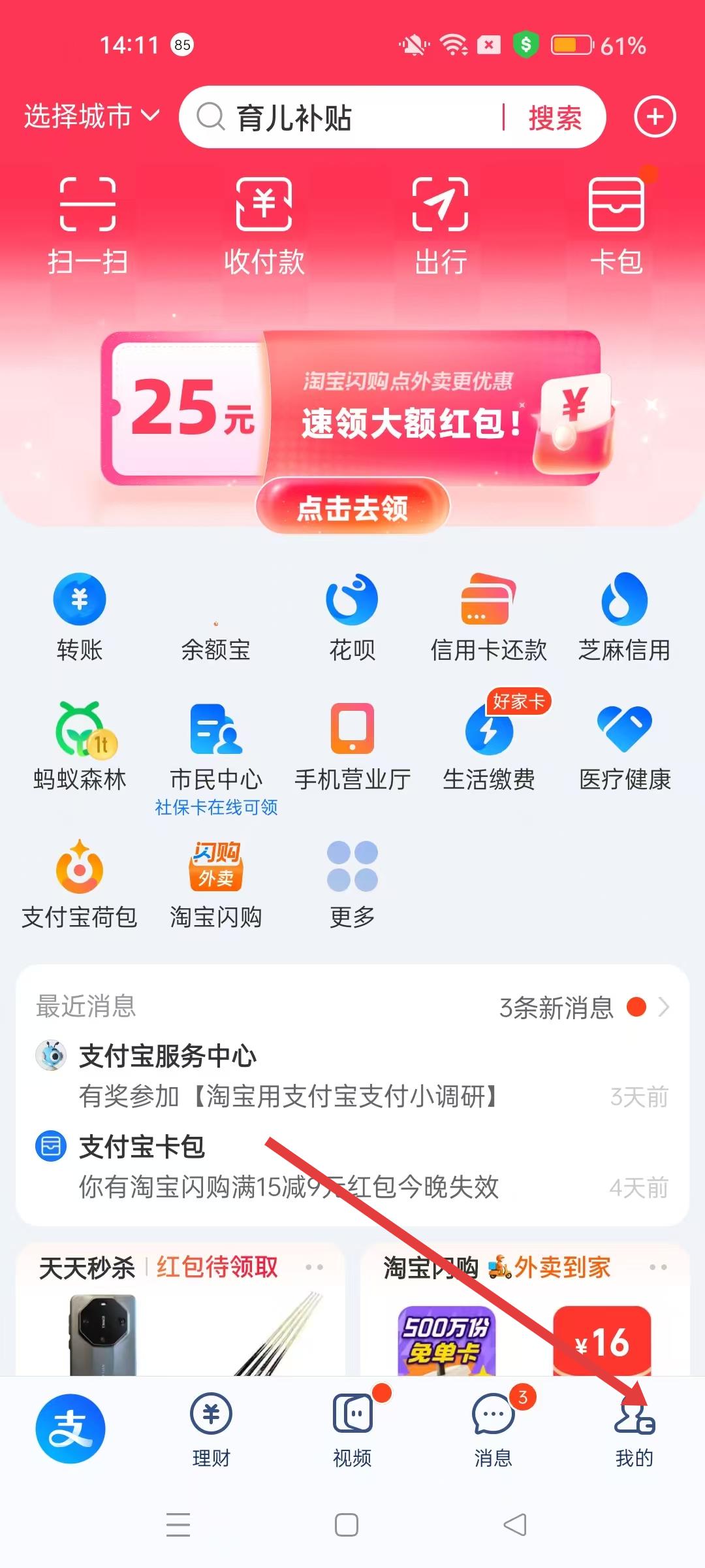 1、打開支付寶APP進(jìn)入首頁,點擊右下角我的,進(jìn)入個人頁面,開始支付設(shè)置流程。