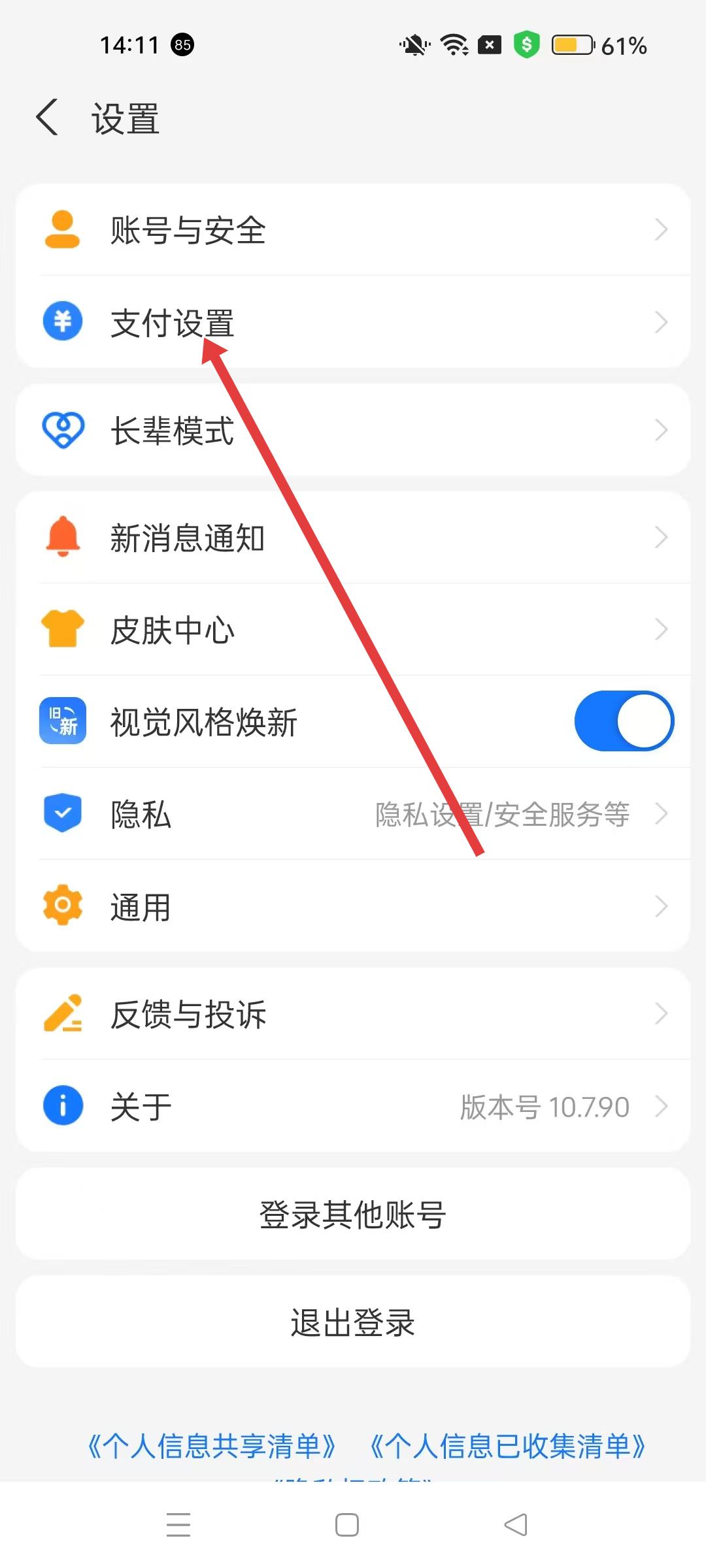 3、設(shè)置頁面點擊支付設(shè)置,進(jìn)入支付設(shè)置頁面,可進(jìn)行支付順序等相關(guān)設(shè)置。