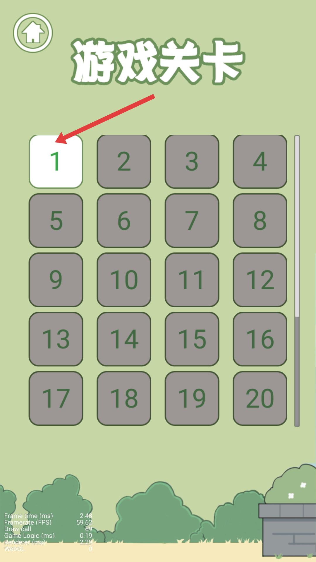 2、進入游戲關(guān)卡界面,顯示多關(guān),僅第1關(guān)可進入,點擊第1關(guān),進入第1關(guān)游戲場景,開始在場景中尋找孩子,完成關(guān)卡任務(wù)。