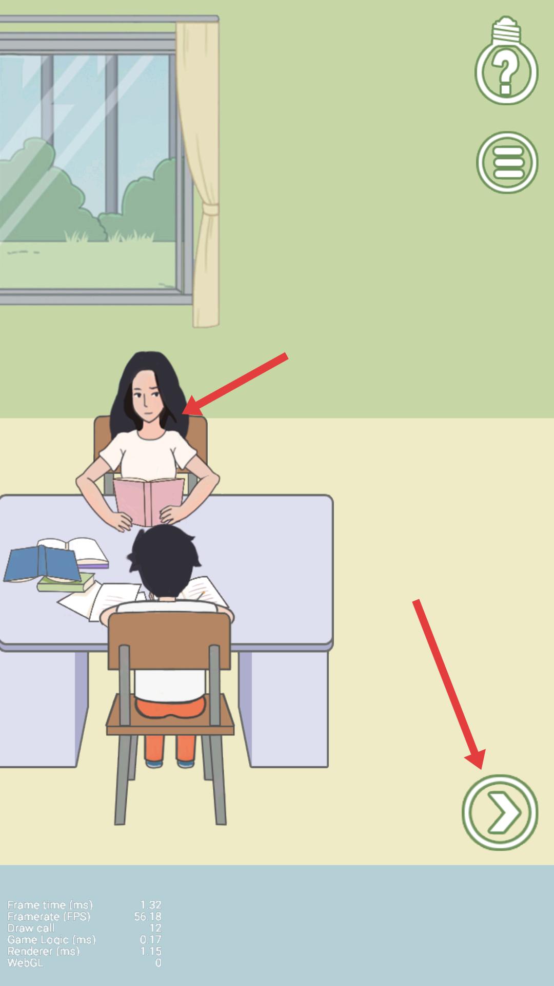 3、第1關(guān)游戲場景中,有孩子和大人,右側(cè)有箭頭按鈕,觀察場景細節(jié),點擊右側(cè)箭頭按鈕,推進游戲進程,嘗試找到孩子的蹤跡。