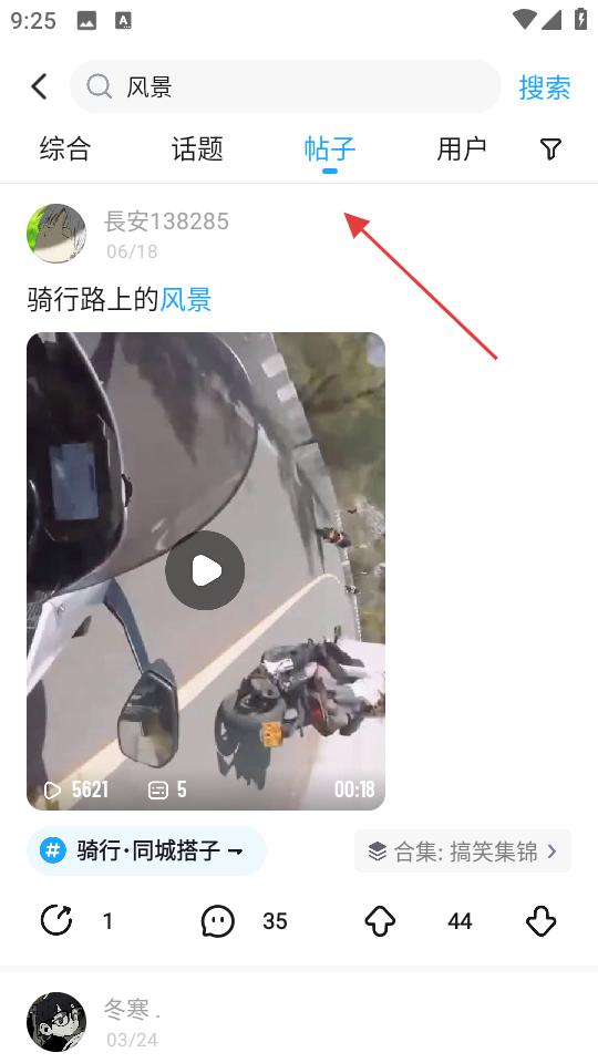 4、帖子頻道,用戶長安138285于06月18日發(fā)布標(biāo)題為騎行路上的風(fēng)景的視頻帖字,視頻展現(xiàn)騎行途中畫面。