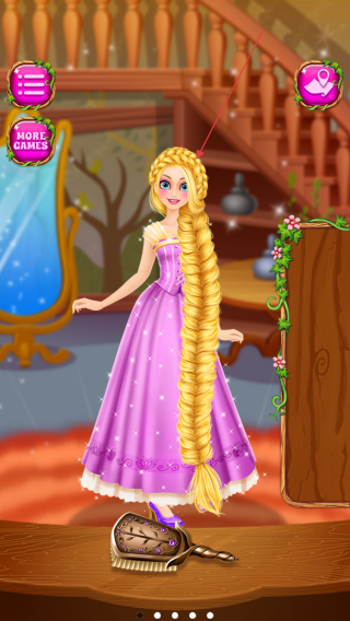 4、使用梳子等工具為公主梳理長(zhǎng)發(fā),設(shè)計(jì)獨(dú)特的發(fā)型,比如編成辮子等,還能搭配好看的發(fā)飾,之后為公主挑選漂亮的禮服,完成整體造型設(shè)計(jì)。