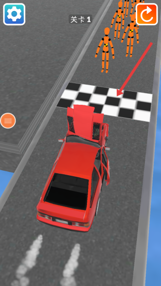 3、繼續(xù)駕駛,接近黑白格子的終點(diǎn)線(xiàn),周?chē)谐壬诵谓巧?,要讓汽?chē)順利抵達(dá)終點(diǎn)區(qū)域。