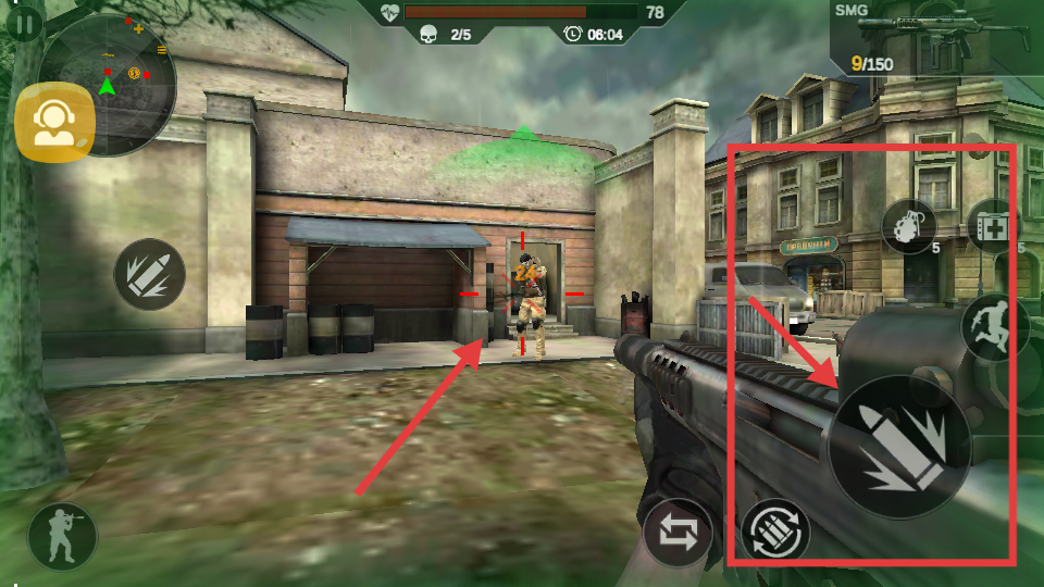 2、在關(guān)卡內(nèi)遇到敵人時(shí),點(diǎn)擊右側(cè)攻擊按鈕射擊,利用場(chǎng)景中的掩體躲避敵人攻擊,然后逐步消滅敵人。
