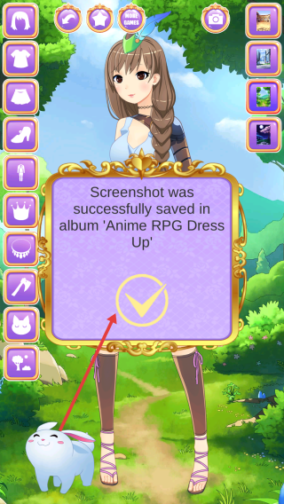 4、當完成滿意的裝扮后,點擊相機圖標進行截圖,游戲會提示截圖已成功保存,可以在對應(yīng)的相冊中查看自己的裝扮成果。