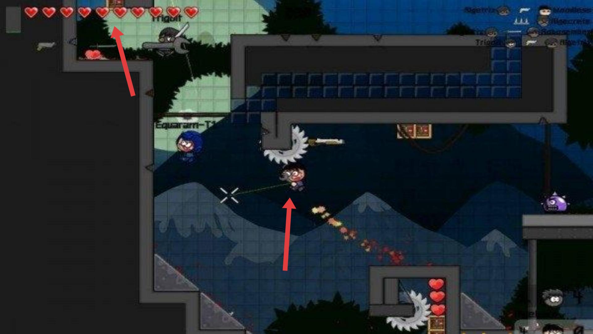 4、游戲關(guān)卡需注意上方紅心代表生命值,操控角色在場景中移動,躲避危險,利用場景元素推進(jìn),同時可收集紅心,維持生命值。