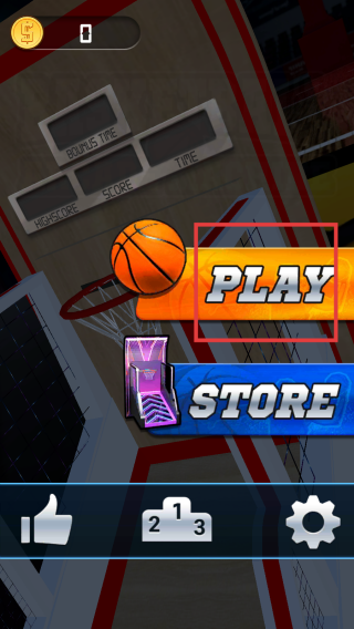 1、玩家下載進(jìn)入在游戲主界面,根據(jù)圖標(biāo)標(biāo)記點(diǎn)擊PLAY按鈕,進(jìn)入籃球街機(jī)模擬游戲,準(zhǔn)備開始投籃挑戰(zhàn)。