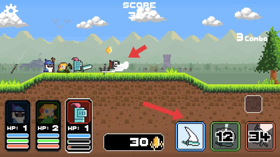 1、戰(zhàn)斗場(chǎng)景中,選擇下方技能圖標(biāo),點(diǎn)擊釋放對(duì)應(yīng)技能,助力英雄小隊(duì)對(duì)抗敵人推進(jìn)關(guān)卡。