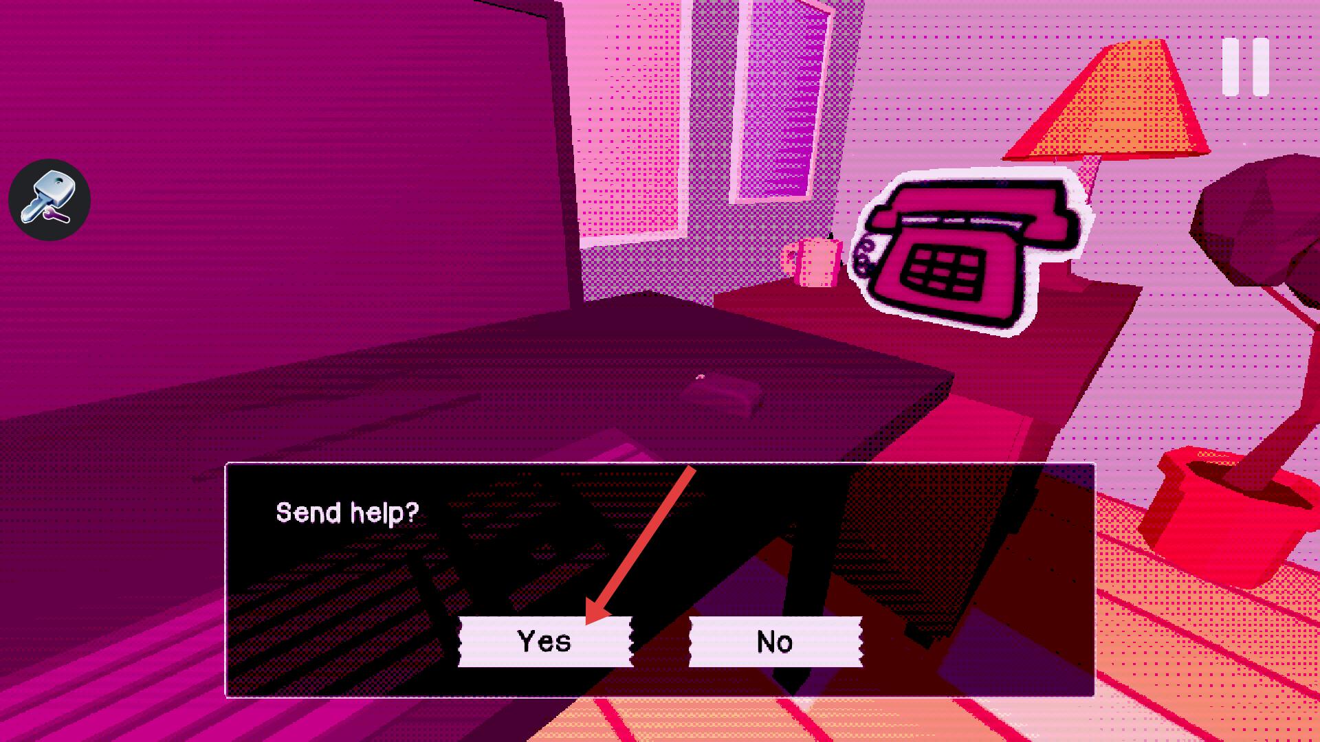 3、當(dāng)出現(xiàn)Send help的選擇時(shí),要結(jié)合之前收集的線索和對(duì)劇情的判斷,謹(jǐn)慎選擇Yes或No,不同選擇會(huì)影響劇情走向。