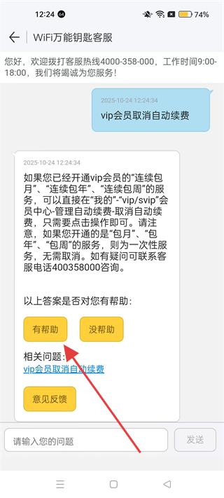 3、在問題解決后可對答案的幫助程度進行反饋,選擇有幫助或沒幫助,參與客服服務的優(yōu)化評價。