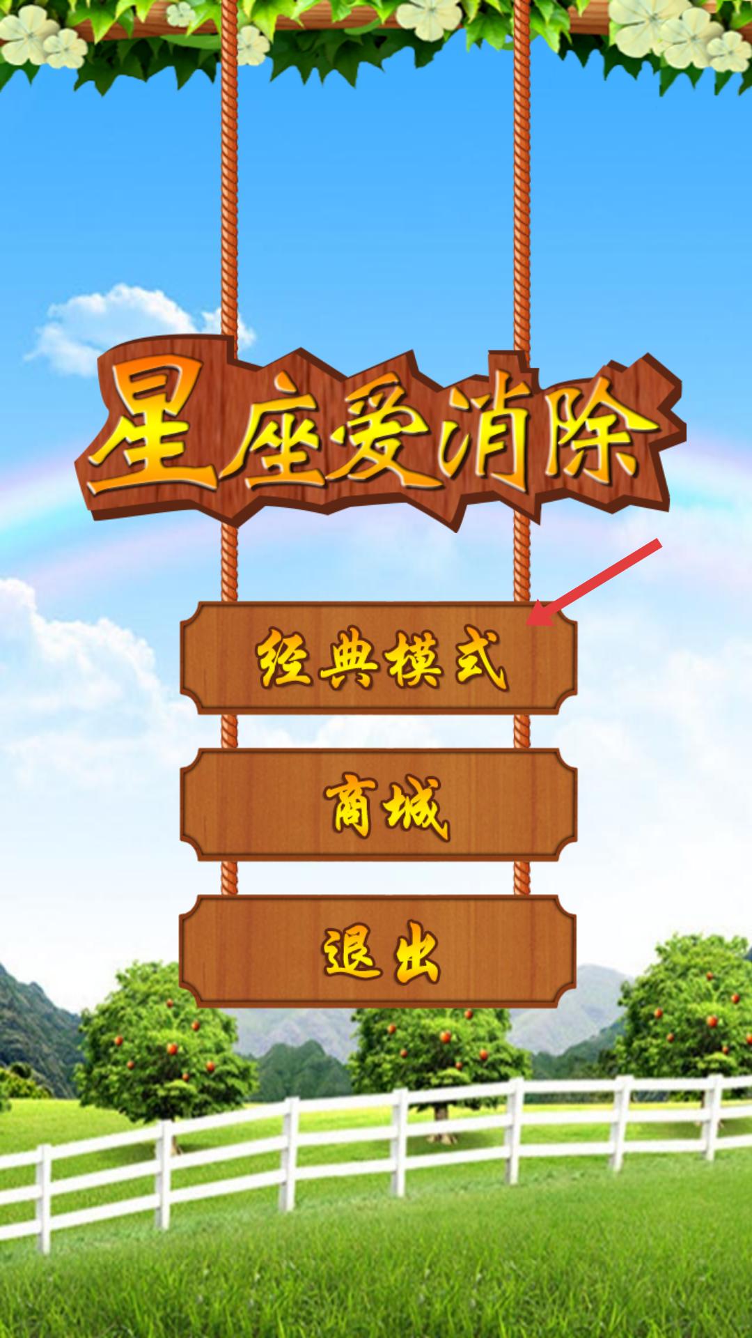 1、游戲初始界面有經(jīng)典模式,商城,退出選項(xiàng),點(diǎn)擊經(jīng)典模式,進(jìn)入關(guān)卡選擇界面,開啟消除游戲的經(jīng)典玩法挑戰(zhàn)。