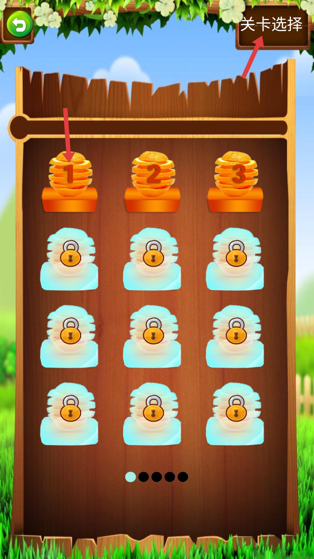 2、進(jìn)入關(guān)卡選擇界面后,可看到多個(gè)關(guān)卡,選擇標(biāo)有1的關(guān)卡,進(jìn)入第一關(guān),開始消除游戲的第一關(guān)挑戰(zhàn)。