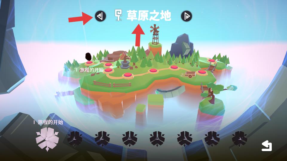 3、進(jìn)入地圖界面,確認(rèn)【草原之地】區(qū)域,找到【旅程的開始】關(guān)卡標(biāo)識并點(diǎn)擊進(jìn)入,也可自行選擇關(guān)卡。