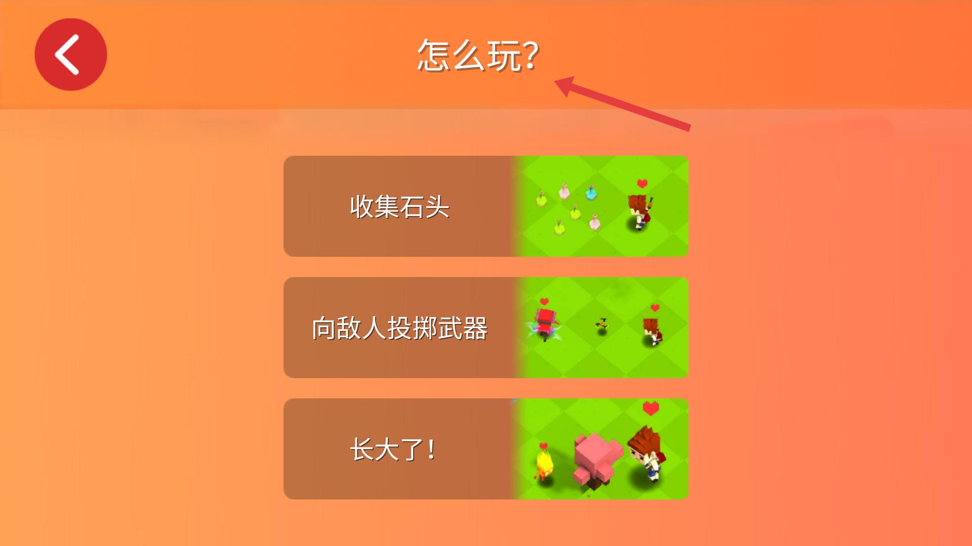 4、進(jìn)入怎么玩界面,可了解游戲玩法,包括收集石頭、向敵人投擲武器等,熟悉這些玩法,能更好地進(jìn)行游戲。
