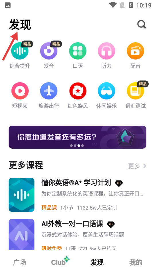 3、發(fā)現(xiàn)頁(yè)面聚合綜合提升、發(fā)音等學(xué)習(xí)模塊,還推薦懂你英語(yǔ)A等豐富課程,助力英語(yǔ)學(xué)習(xí)。