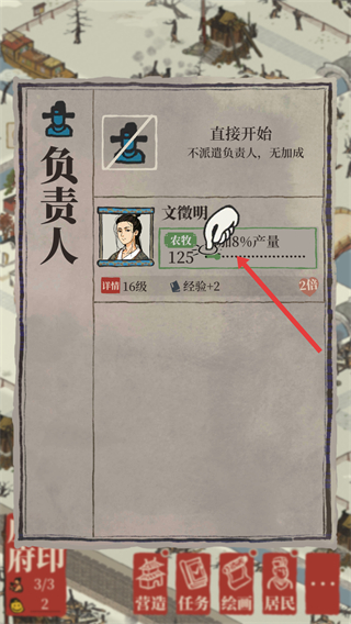 4、在負(fù)責(zé)人界面,可選擇文徵明等角色負(fù)責(zé)農(nóng)田,能提升農(nóng)田產(chǎn)量,讓農(nóng)田生產(chǎn)更高效,助力農(nóng)業(yè)發(fā)展。