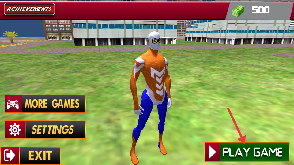 1、點(diǎn)擊綠色的PLAY GAME按鈕,玩家即可進(jìn)入游戲,開啟超級(jí)英雄的冒險(xiǎn)之旅,準(zhǔn)備在城市中執(zhí)行任務(wù)。