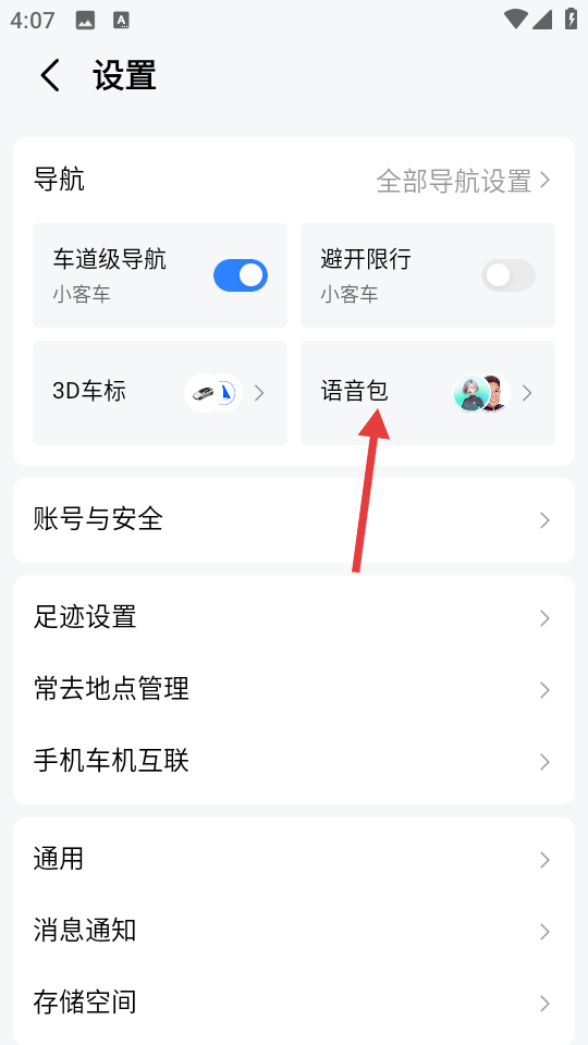1、打開進入設置界面,在設置中找到語音包選項,點擊進入語音包設置頁面,這里可以管理和選擇不同的語音包,為設置維語導航做準備。