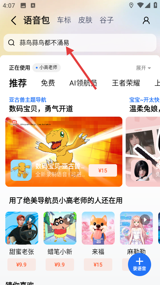 2、進入語音包頁面后在搜索框中輸入相關關鍵詞,搜索查找維語語音包,頁面中還會有推薦的語音包內容,瀏覽這些推薦找到適合的維語語音包。